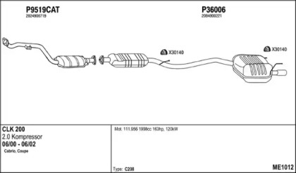 MERCEDES-BENZ CLK Кабриолет (A208) 200 Kompressor (208.444) Глушитель в сборе