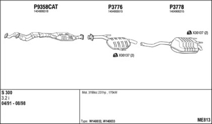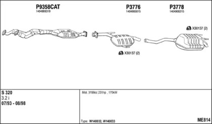 MERCEDES-BENZ S-CLASS (W140) 300 SE, SEL/S320 (140.032, 140.033) Глушитель в сборе