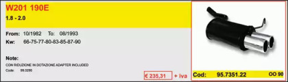 MERCEDES-BENZ 190 (W201) E 2.0 (201.024) Глушитель для спортивного автомобиля