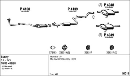 NISSAN SUNNY II (N13) 1.4 LX седан, года выпуска 10.1988 - 08.1991 , 75 л.с.