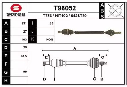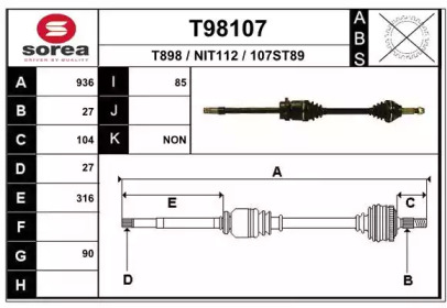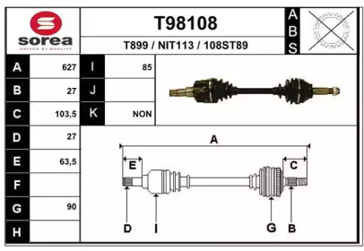 NISSAN BLUEBIRD (T72 , T12, U12) 2.0 i (HLT72, T12) Приводной вал