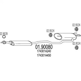 от среднего глушителя выхлопных газов к конечному глушителю